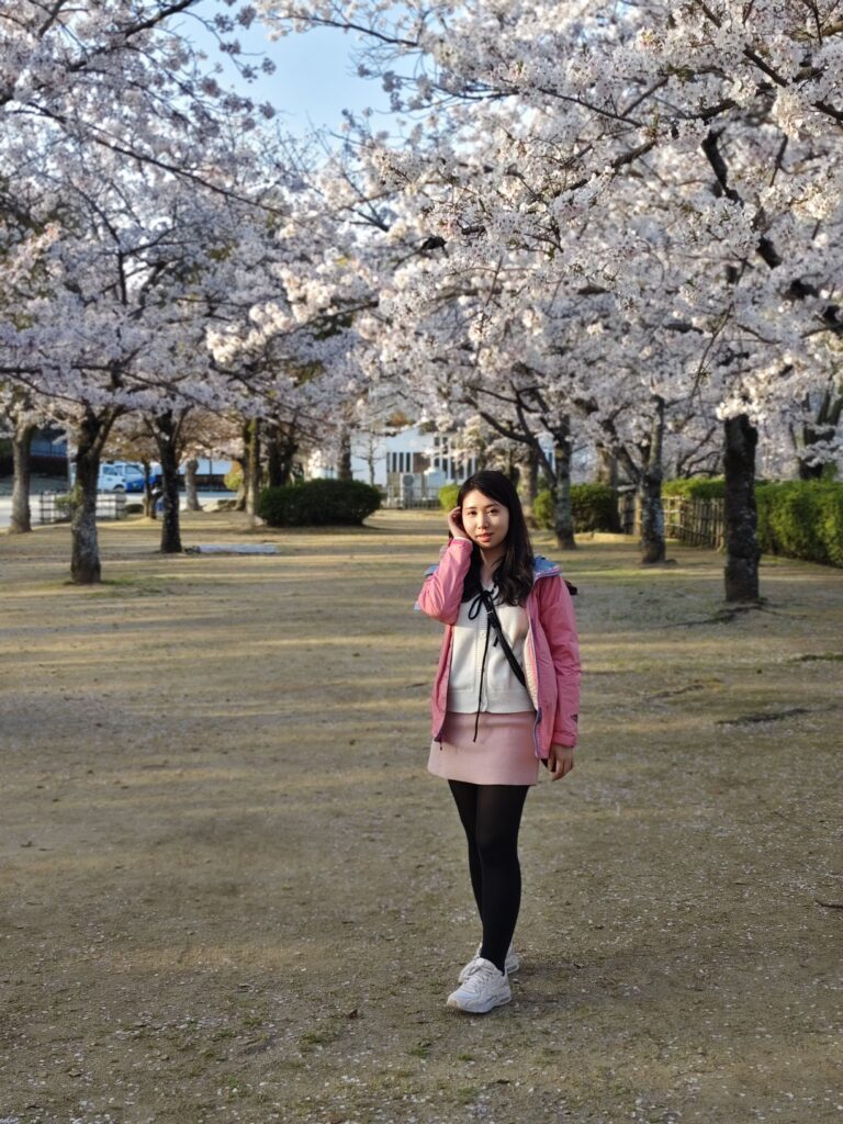 - 午後的暢順時光: 我們約在下午 4 點抵達,此時人潮已逐漸散去,遊覽過程非常暢順。午後柔和的光線灑在潔白城牆上,與粉紅櫻花形成了鮮明而優雅的對比。